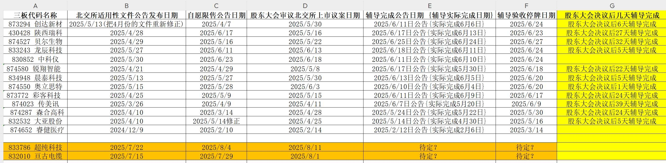 股东大会表决通过北交所上市议案公告后已经二十天过去了,对照今年全部已停牌转板北交