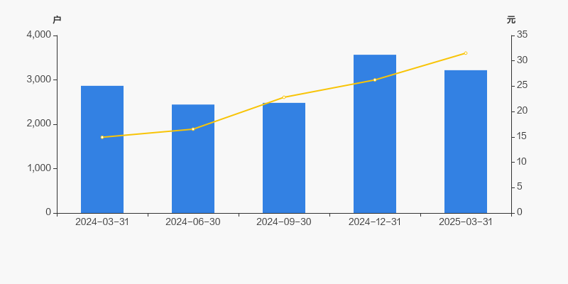 2024年3月31日至今,公司股东户数显著增长,区间涨幅为12.28%。2024年3月31日至2025年3月31日区间股价上涨110.92%。