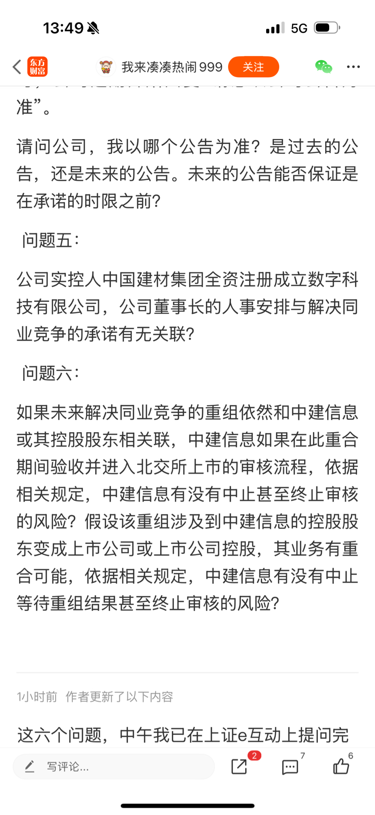 $中建信息(SZ834082)$ 这傻又在宁夏建材吧bibi了,说如果中建信息控股股东与宁夏建材重组,宁夏建材变成中建信息控股股东,是否中建信息有终止上市风险