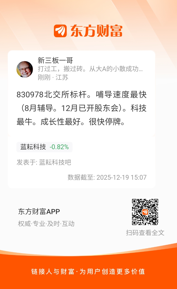 温馨提示: 1.根据《证券法》规定,禁止编造、传播虚假信息或者误导性信息,扰乱证券市场;2.用户在本社区发表的所有资料、言论等仅代表个人观点,与本网站立场无关,不对您构成任何投资建议。用户应基于自己的独立判断,自行决定证券投资并承担相应风险。《东方财富社区管理规定》