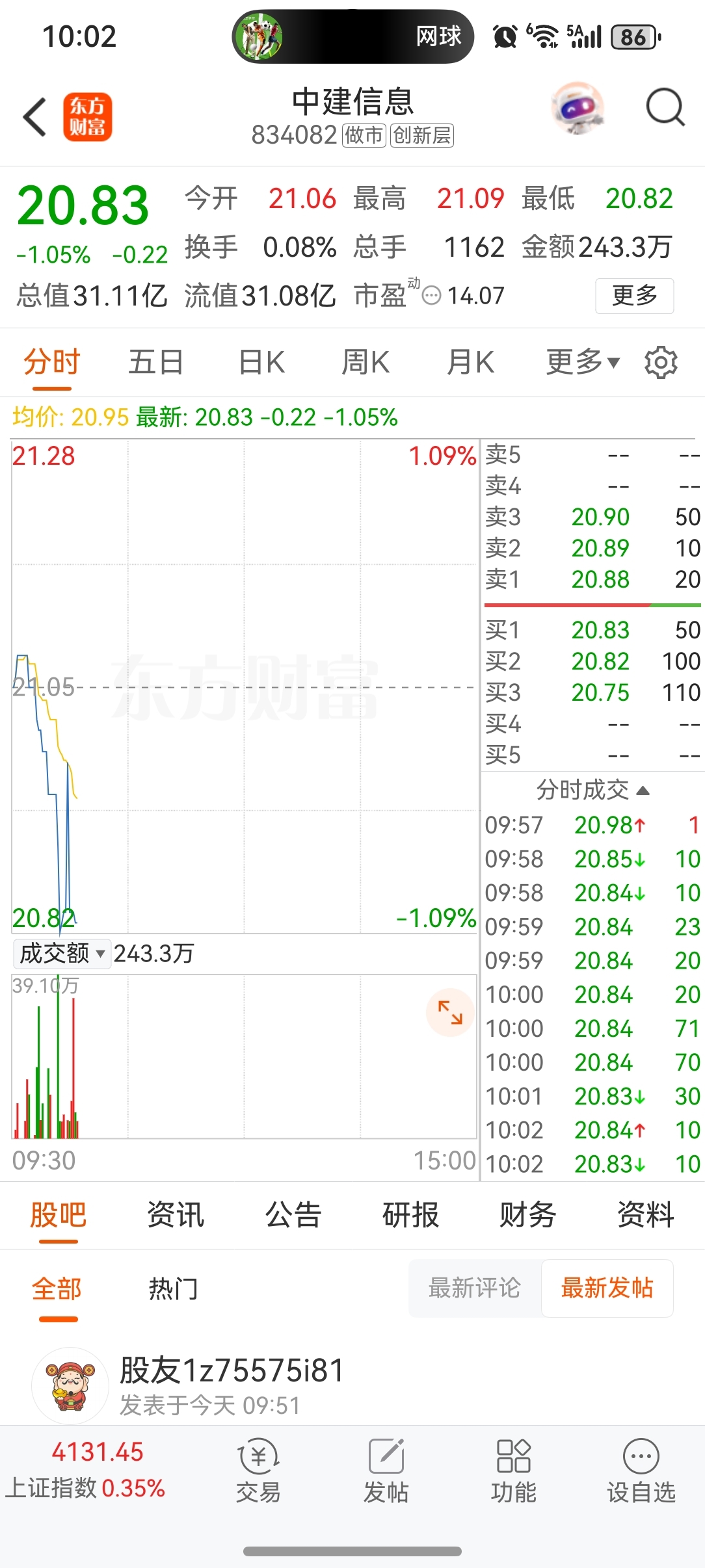 $中建信息(SZ834082)$ 今天砸盘有点凶,估计是在公告出来前最后的吸筹了。看谁会倒在黎明前…