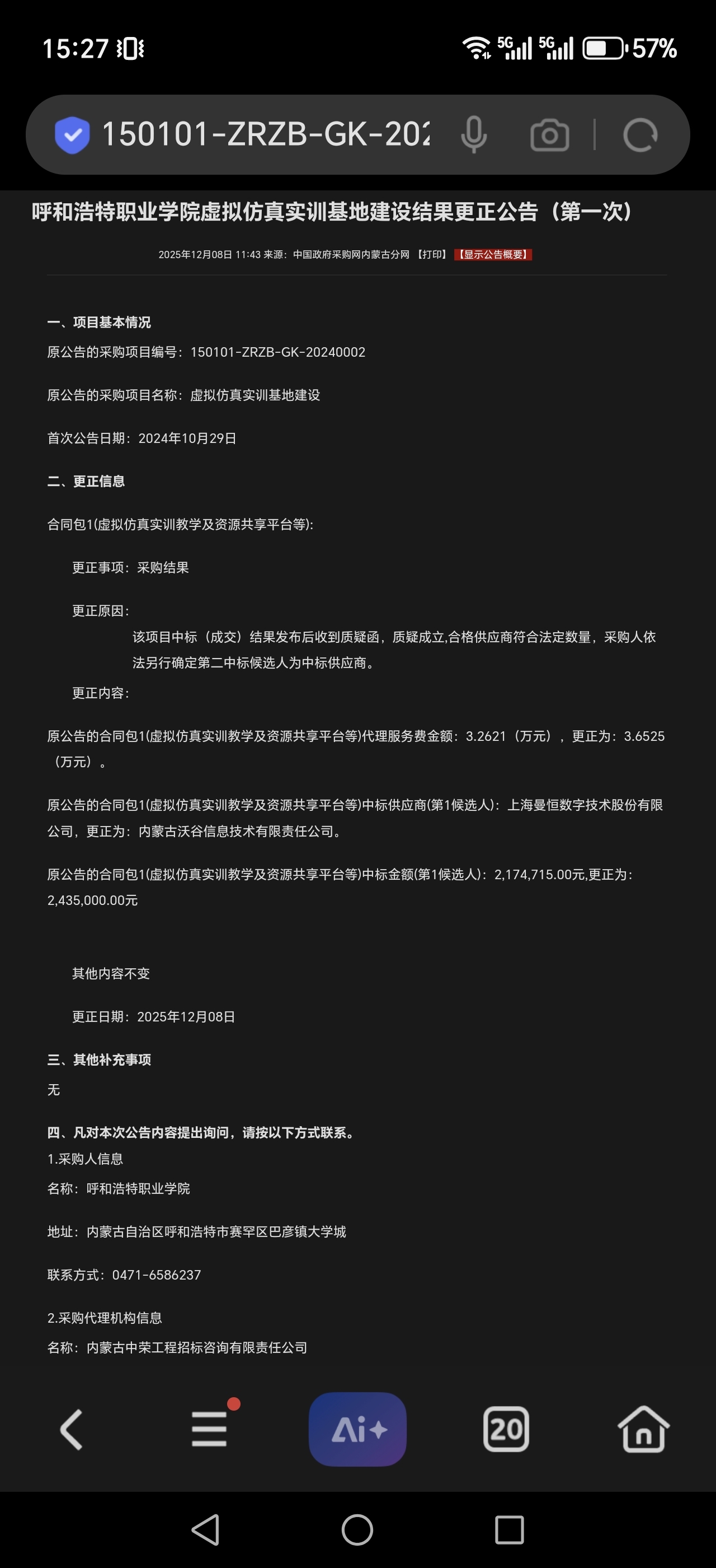 $曼恒数字(SZ834534)$ 本来预中标了,结果被第二名中标了,好可惜啊。