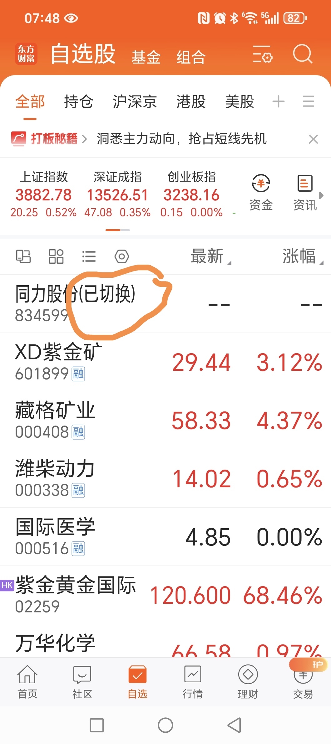 求科普。哪位股友懂得东方财富自选股里同力股份名称后括号里“已切换”是什么意思?谢