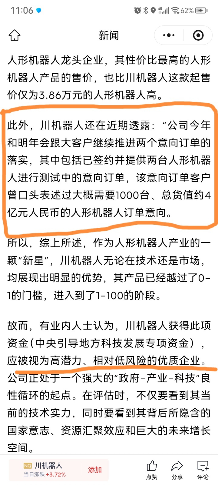 $川机器人(SZ835015)$ 现在正在与2个大客户落实订单,其中一个订单有4亿