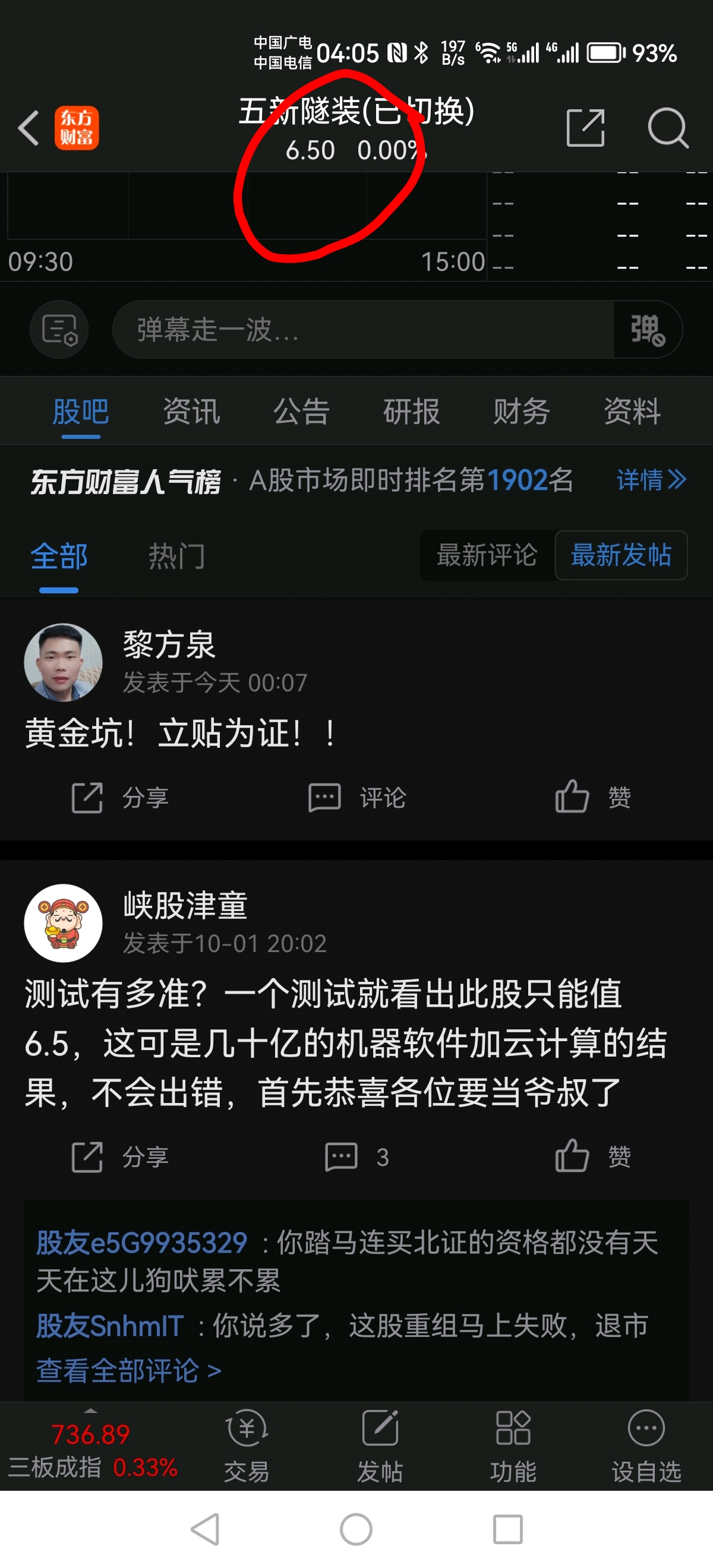 $五新隧装(已切换)(SZ835174)$ 一觉醒来,变 6块5啦?