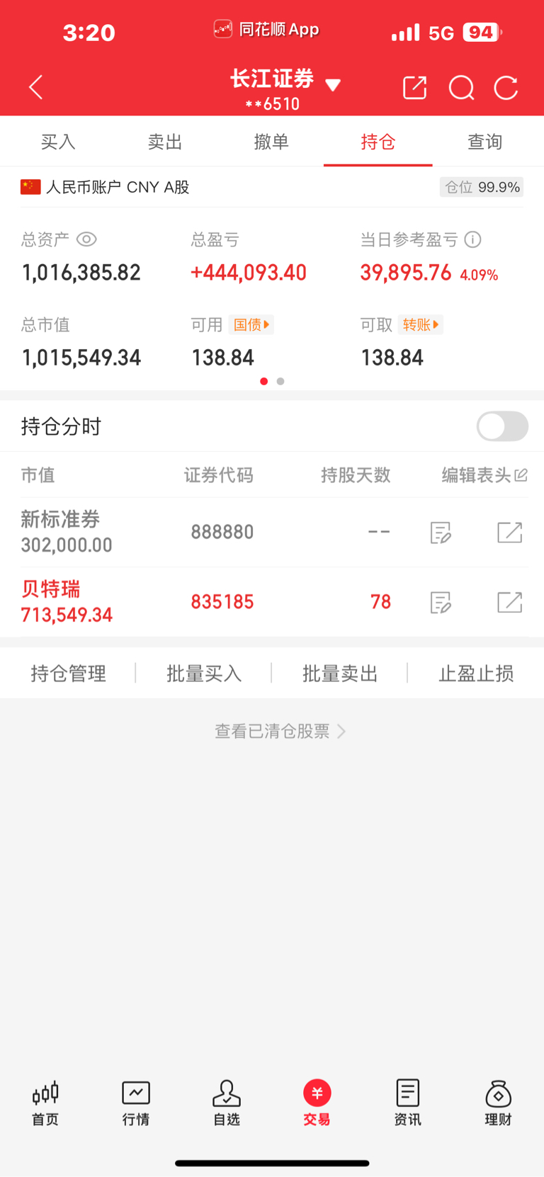 $贝特瑞(SZ835185)$ 已经将融资都还了,感谢贝贝让我回本,持有到本轮牛市结束,感恩。