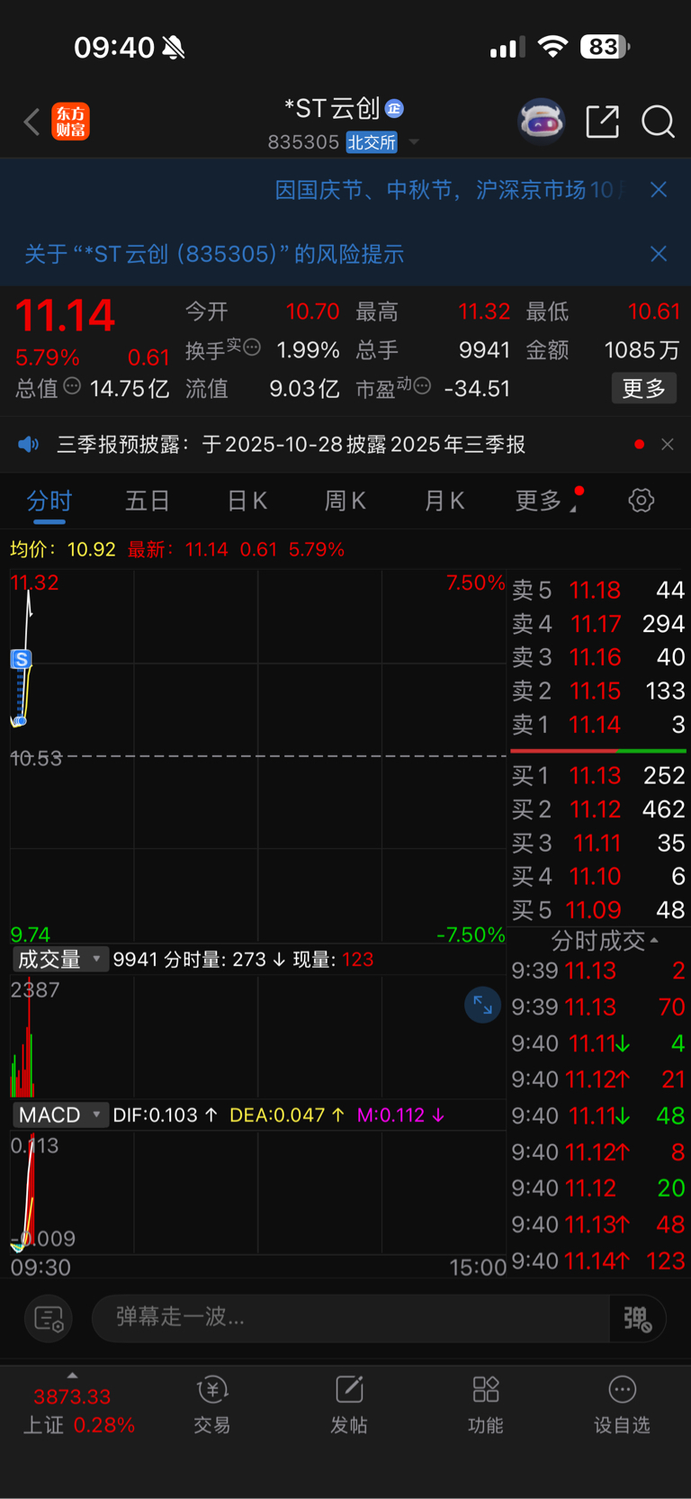 $*ST云创(SZ835305)$ 跌怕了,刚割了一部分就拉起来,韭菜命