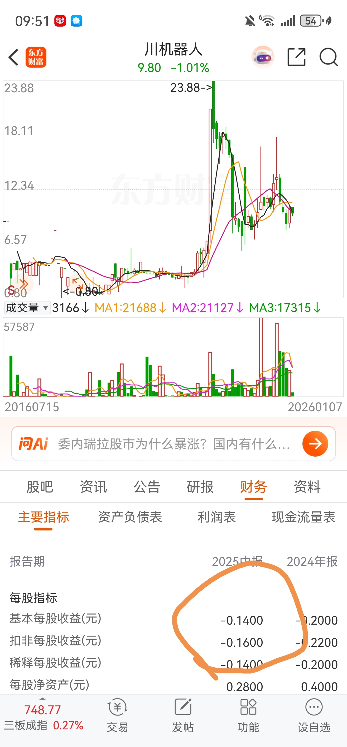 川机器人一个上市辅导公告,股价最高涨到11元多,现价9.80云。思尔特也是机器人概念,而且是由航天科工控股,营收、每股收益、净资产都远超川机器人,而股价仅2.37元,真是汗颜