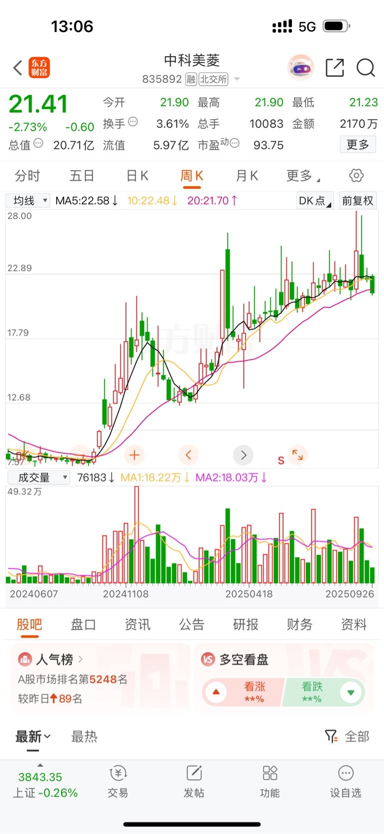 $中科美菱(SZ835892)$ 20周均线都跌破了