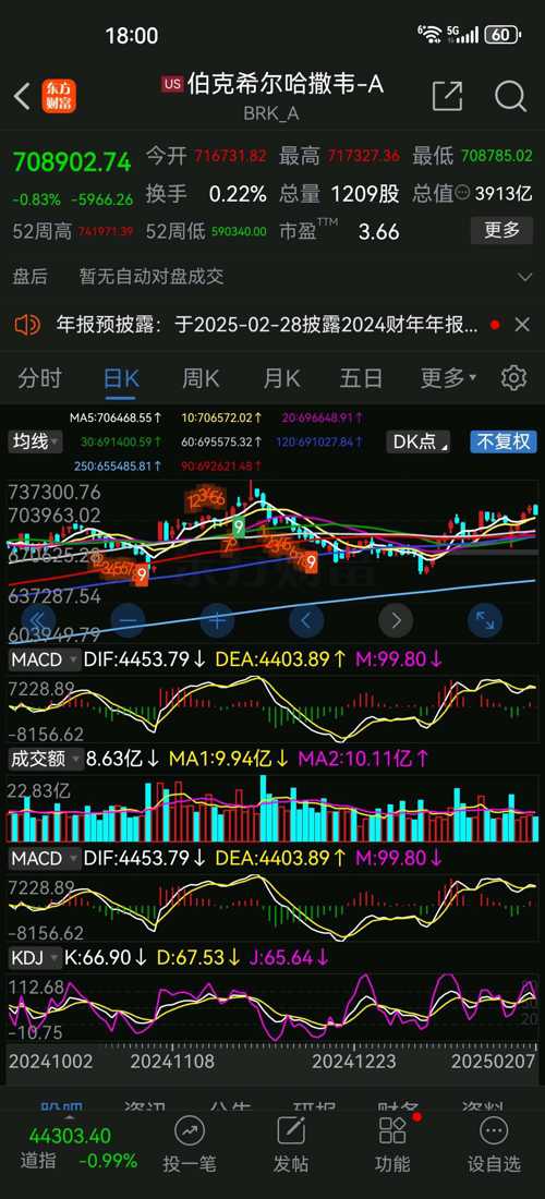 全球最贵股票,70余万美元/股,相当于400多万人民币每1股!$伯克希尔哈撒韦-