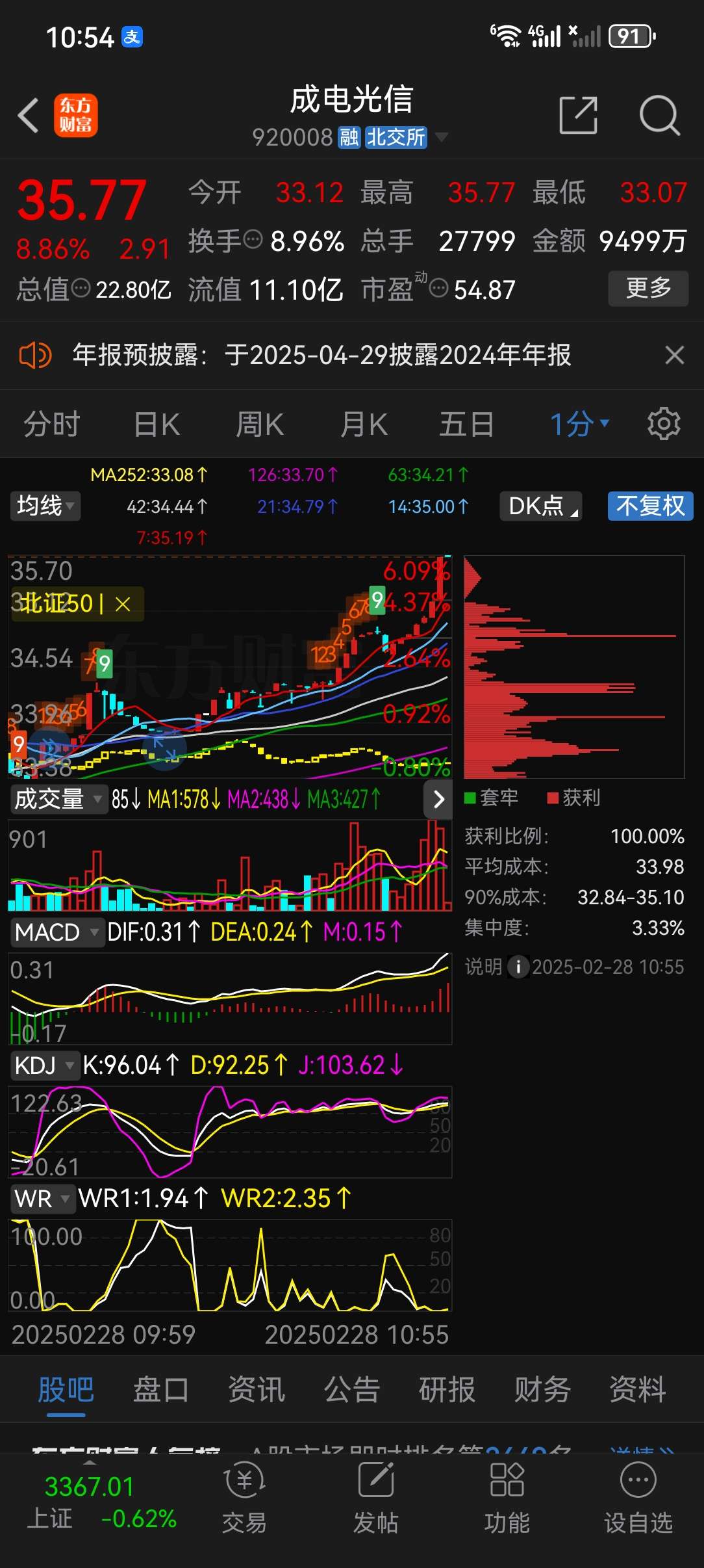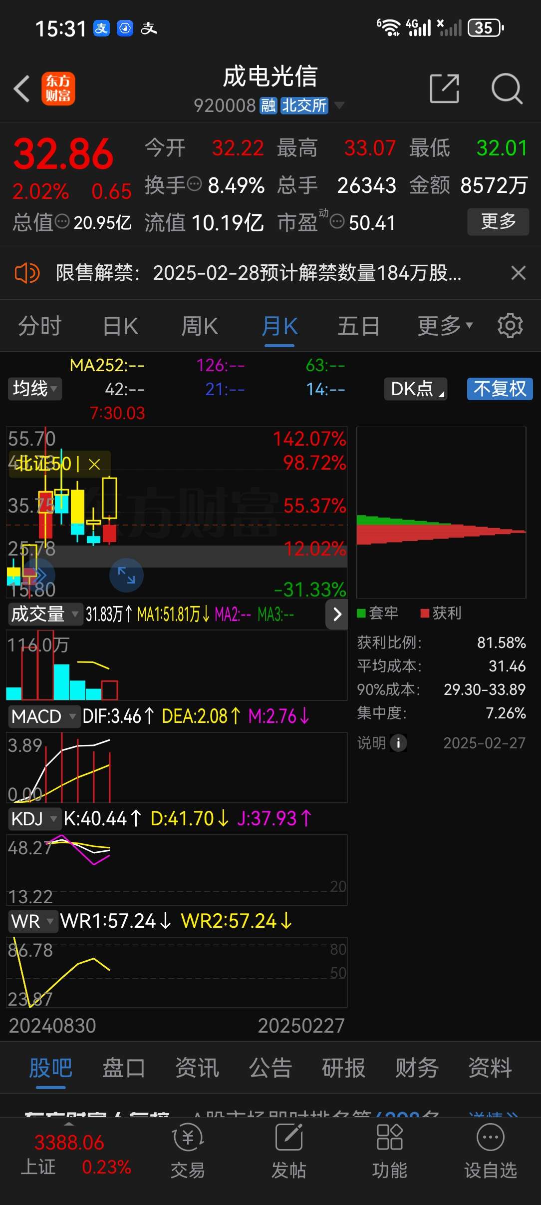 $成电光信(SZ920008)$一个月走势输于北证大盘,筹码集中度显示主升浪要来了。 3月内必翻倍!立帖为证!