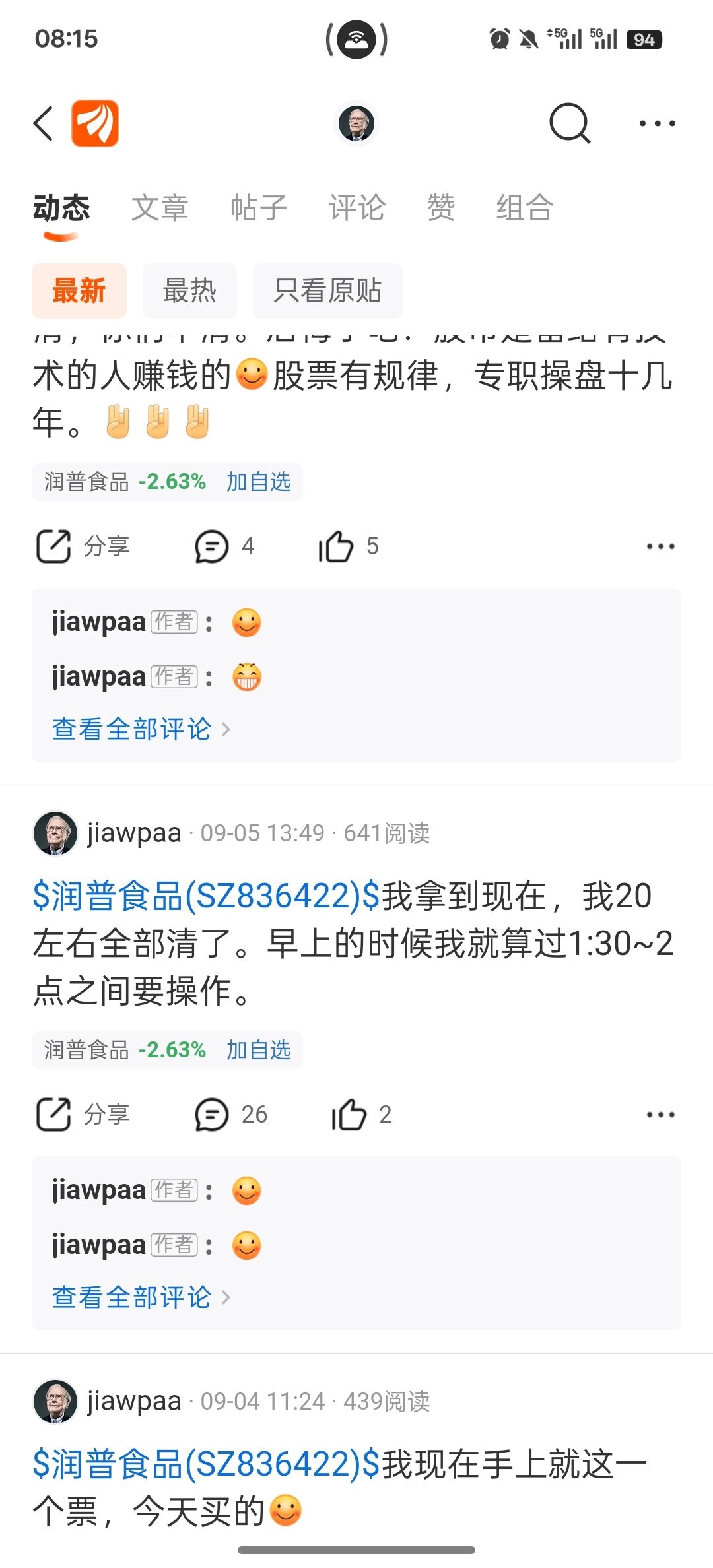 $润普食品(SZ836422)$ 当时清在高点,,水平9成赚,我卖了几乎会下