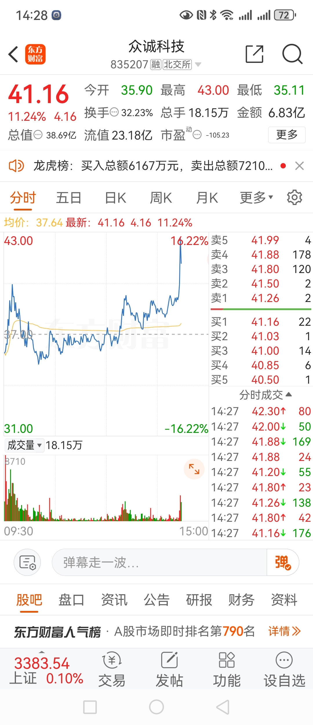 又被众诚科技反超了,晕。市值比他小,做实业怎么牛叉,干不过一些概念股!!!!