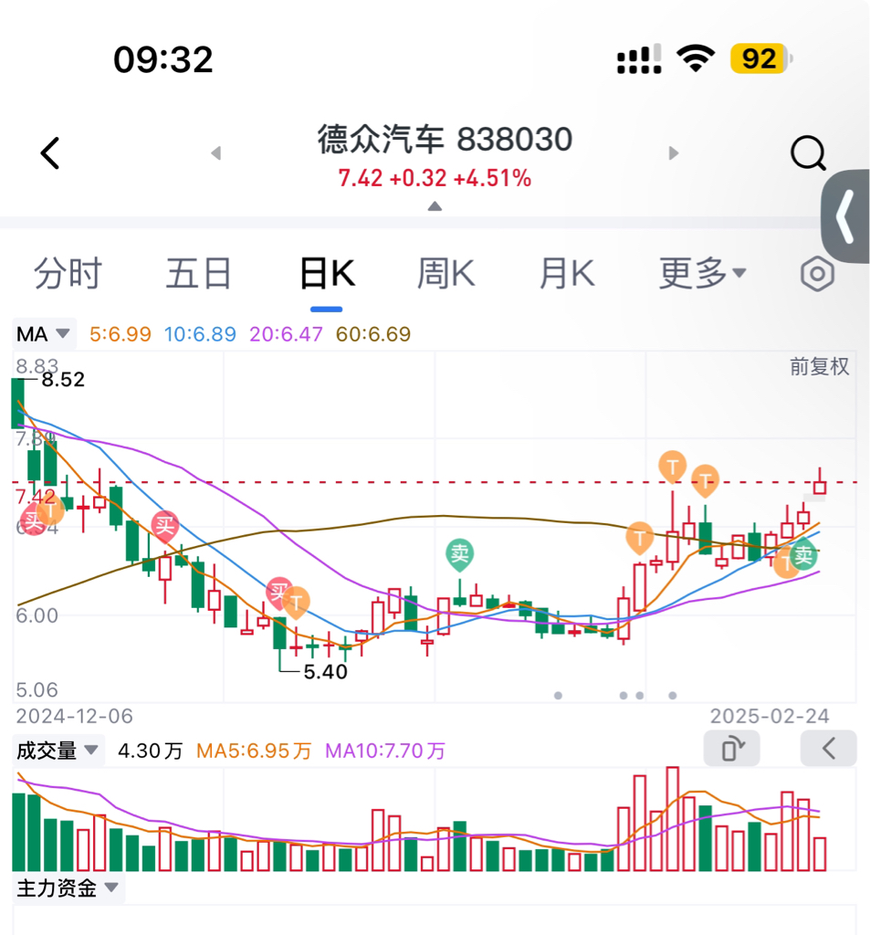 $德众汽车(SZ838030)$ 就等我割肉拉30cm是吧