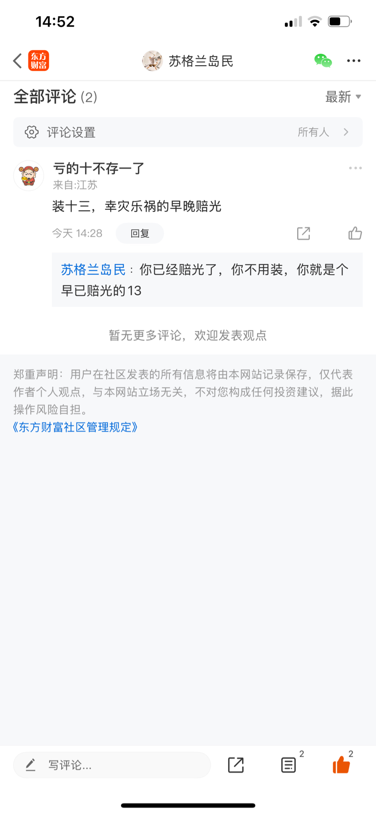 温馨提示: 1.根据《证券法》规定,禁止编造、传播虚假信息或者误导性信息,扰乱证券市场;2.用户在本社区发表的所有资料、言论等仅代表个人观点,与本网站立场无关,不对您构成任何投资建议。用户应基于自己的独立判断,自行决定证券投资并承担相应风险。《东方财富社区管理规定》