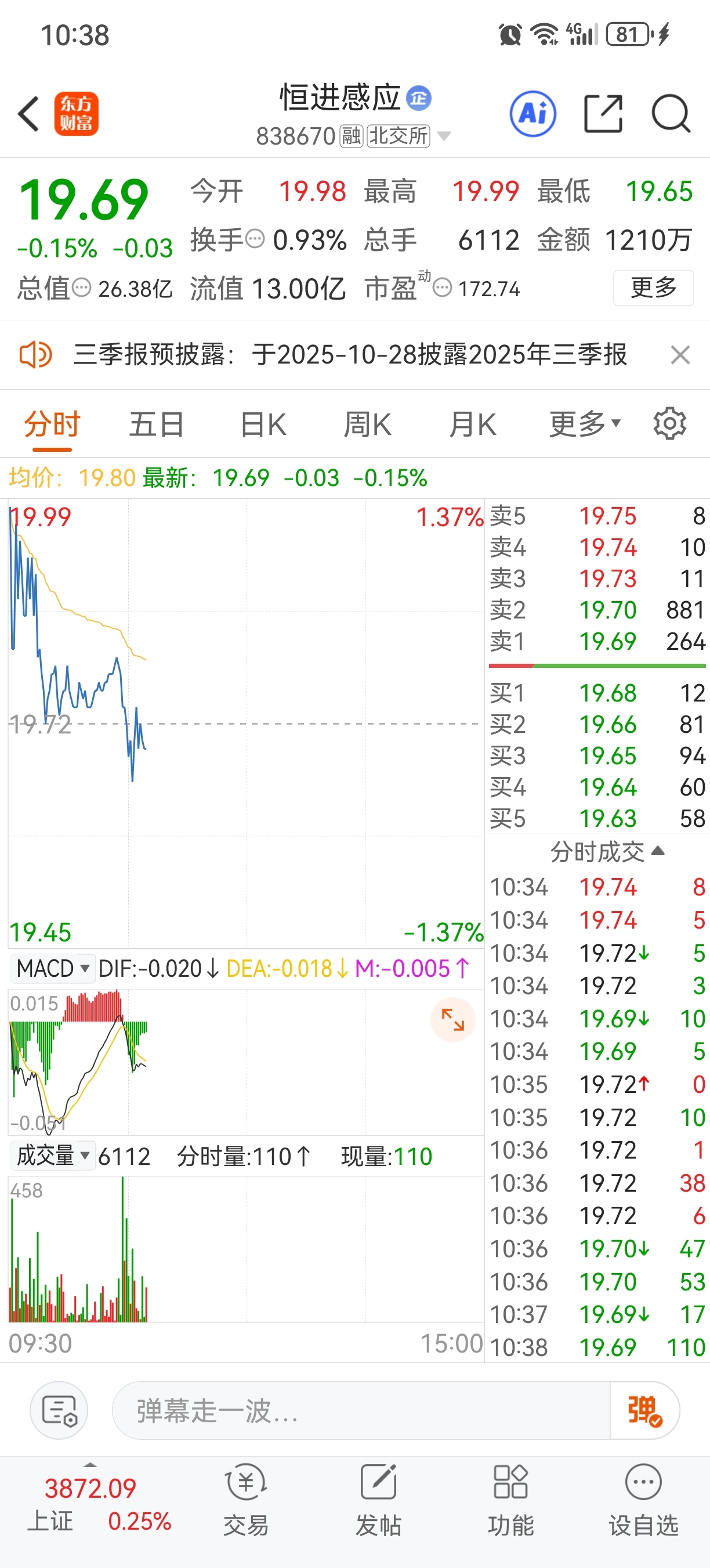 $恒进感应(SZ838670)$ 要跌停板了,大资金最先跑