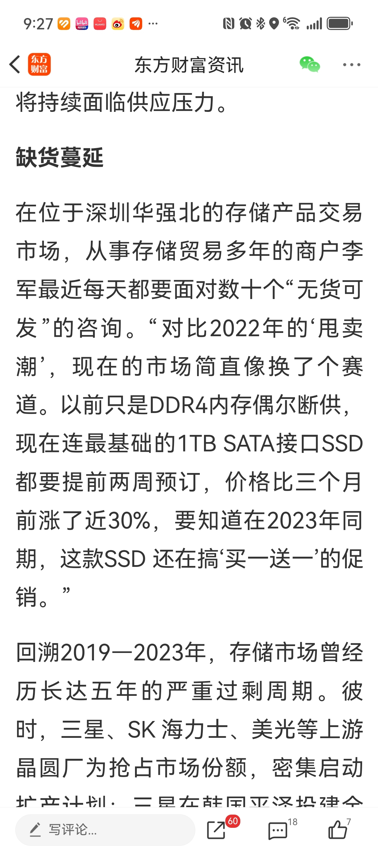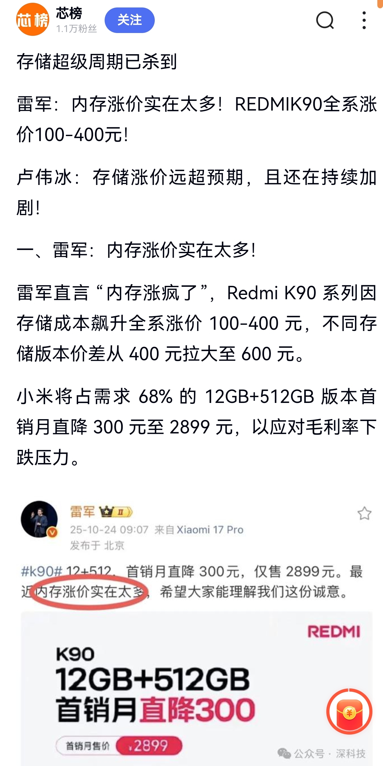 雷军也抱怨了,现在从ddr3,r4,r5都涨的厉害。现在很多经销商反映前几个月是工厂求着他们卖内存和硬盘,现在倒反天罡从工厂能不能拿货完全看工厂心情和价格。供需严重失衡。