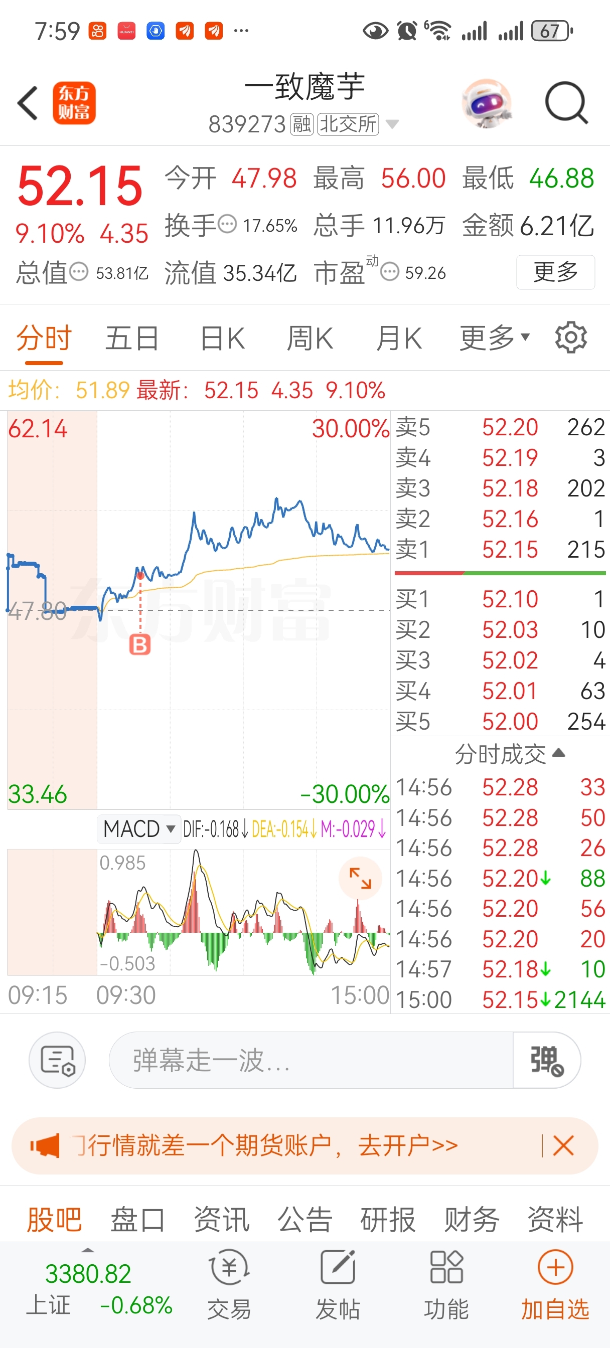 $一致魔芋(SZ839273)$ 50.32成本,希望明天能顺利岀来
