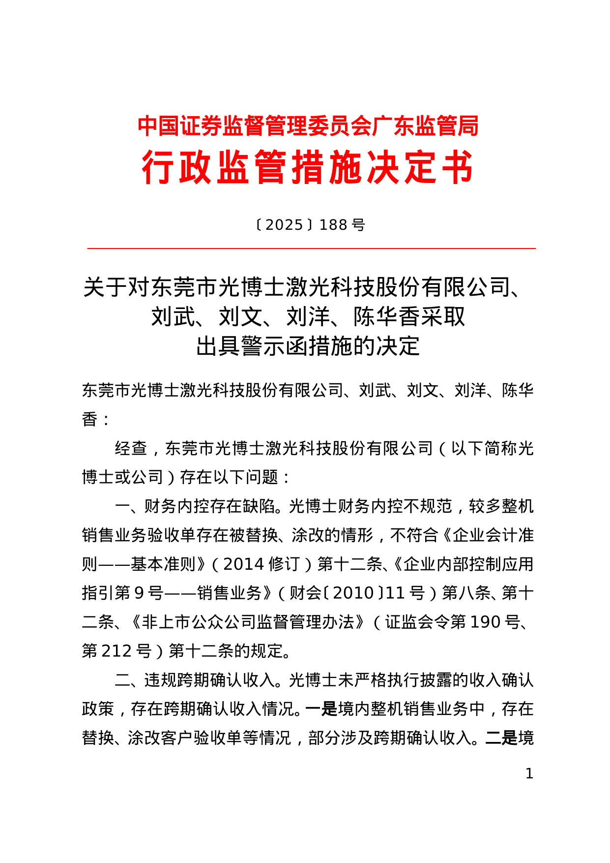 光博士被出具警示函,涉财务内控缺陷等违规行为