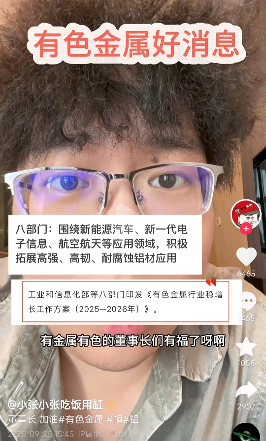 $新威凌(SZ871634)$ 董事长们有福利了,八部门印发的有色金属行业稳增长工作方案来袭。涨涨涨!