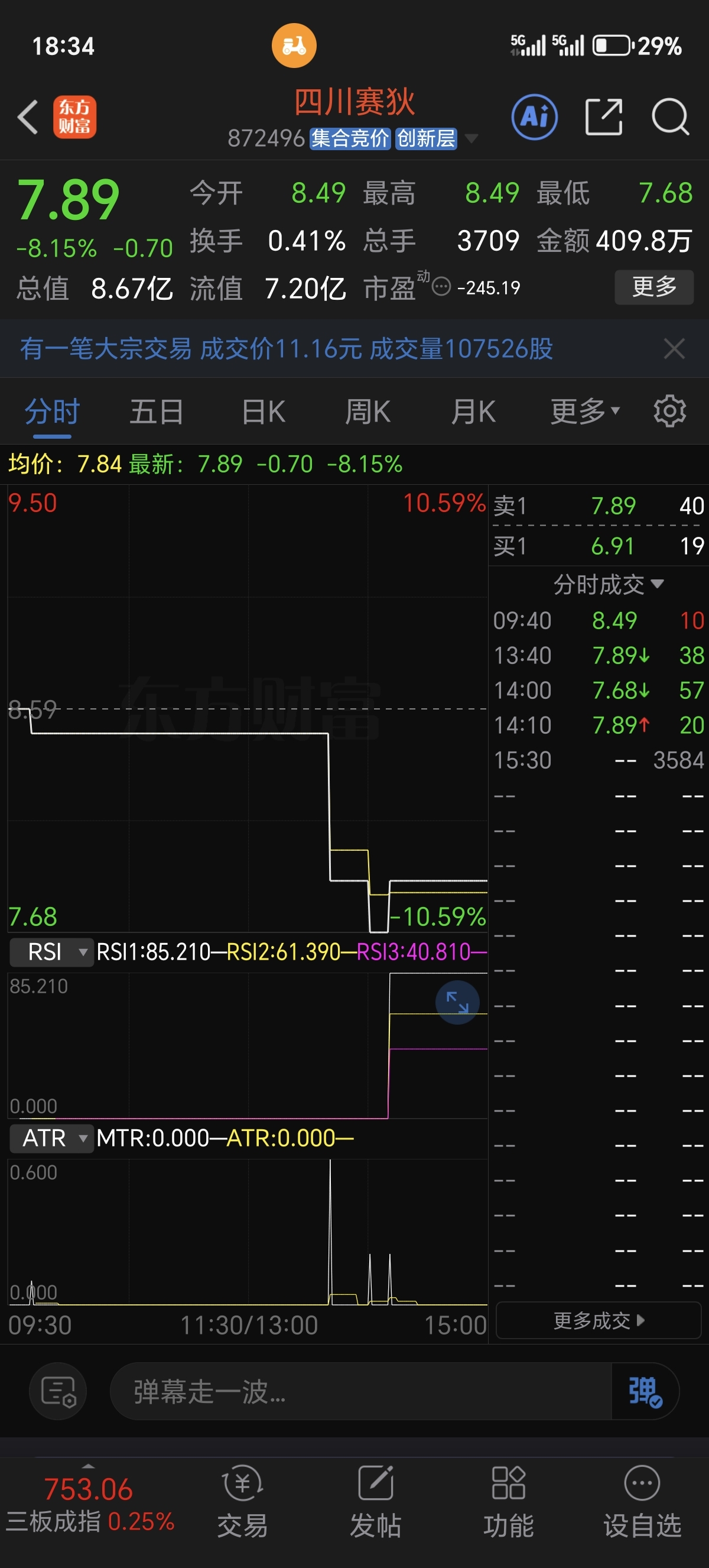 $四川赛狄(SZ872496)$ 大宗11.16元/股
