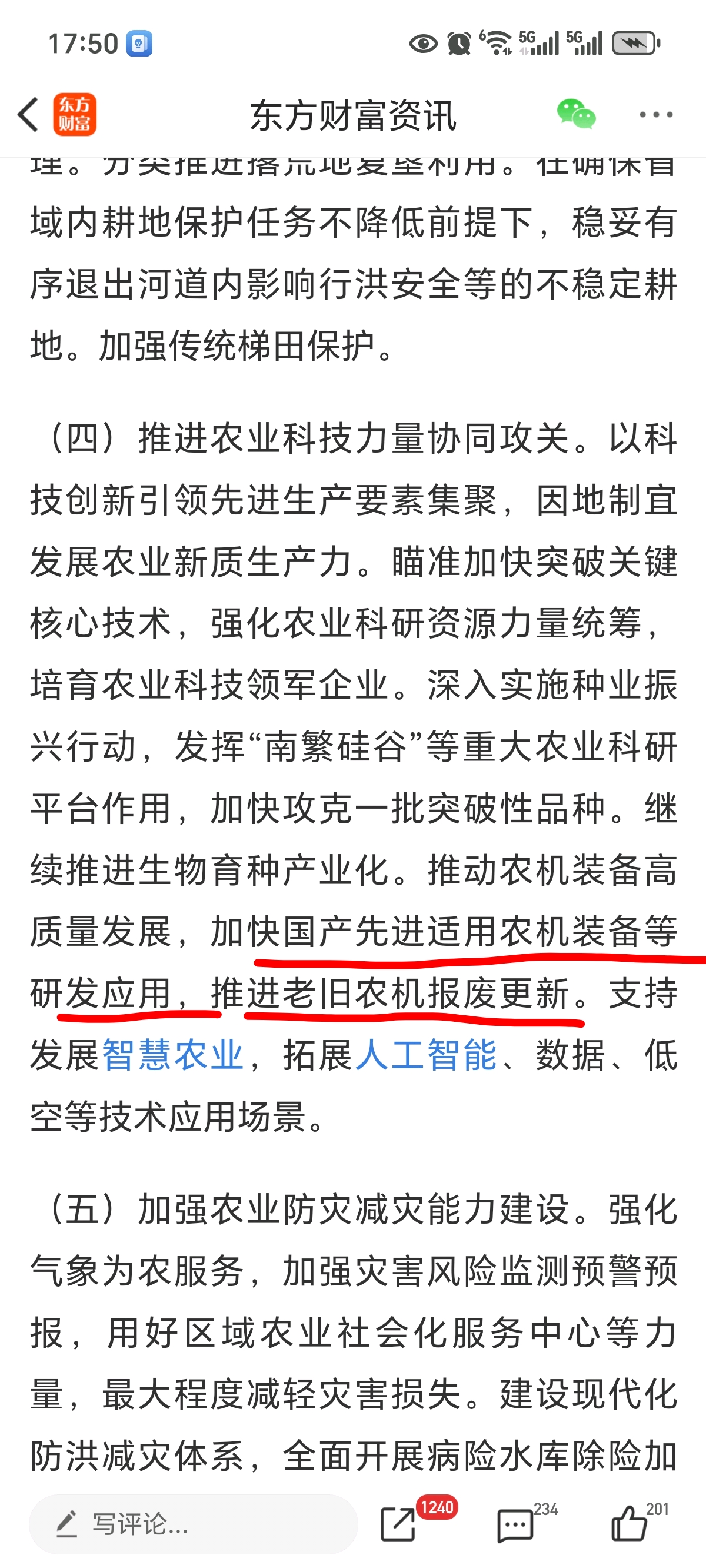 一号文件第四条:推动农机装备研发应用,推进老旧农机报废更新。明天我将带头冲锋!
