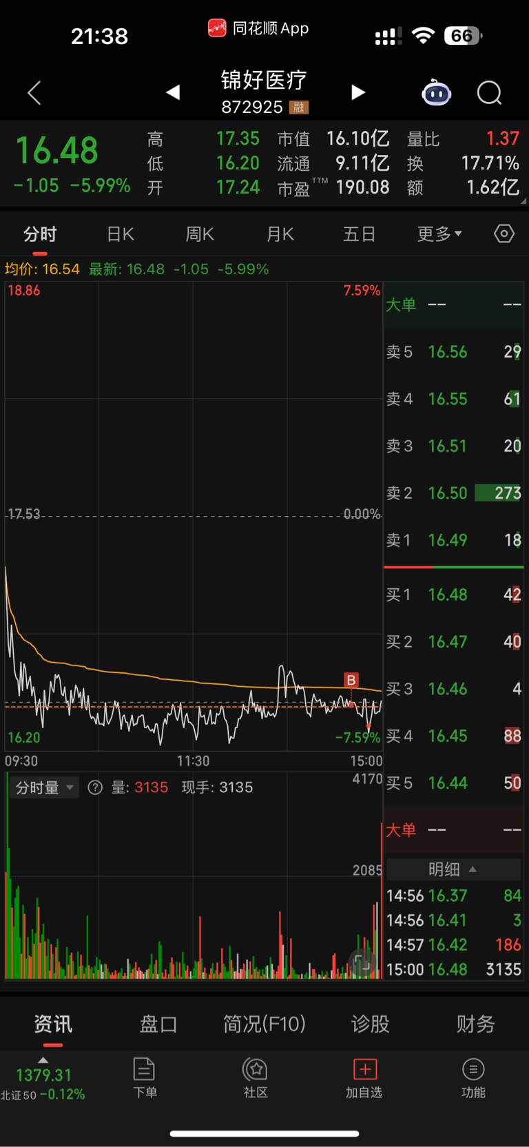 $锦好医疗(SZ872925)$ 我今天来支持一下
