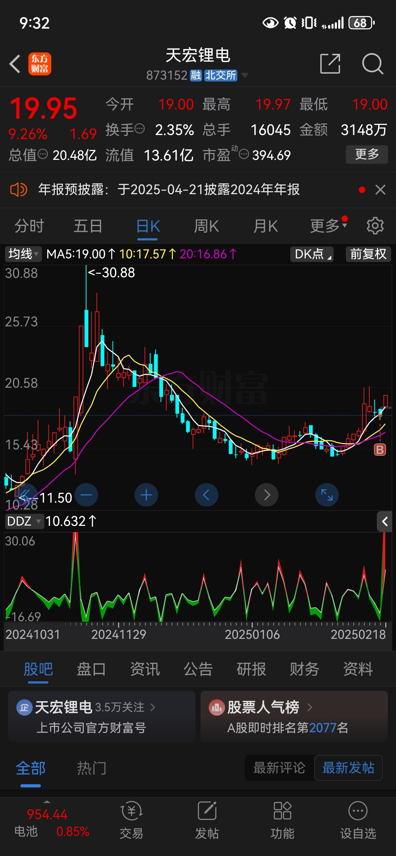 $天宏锂电(SZ873152)$ 昨天买的,卖不卖