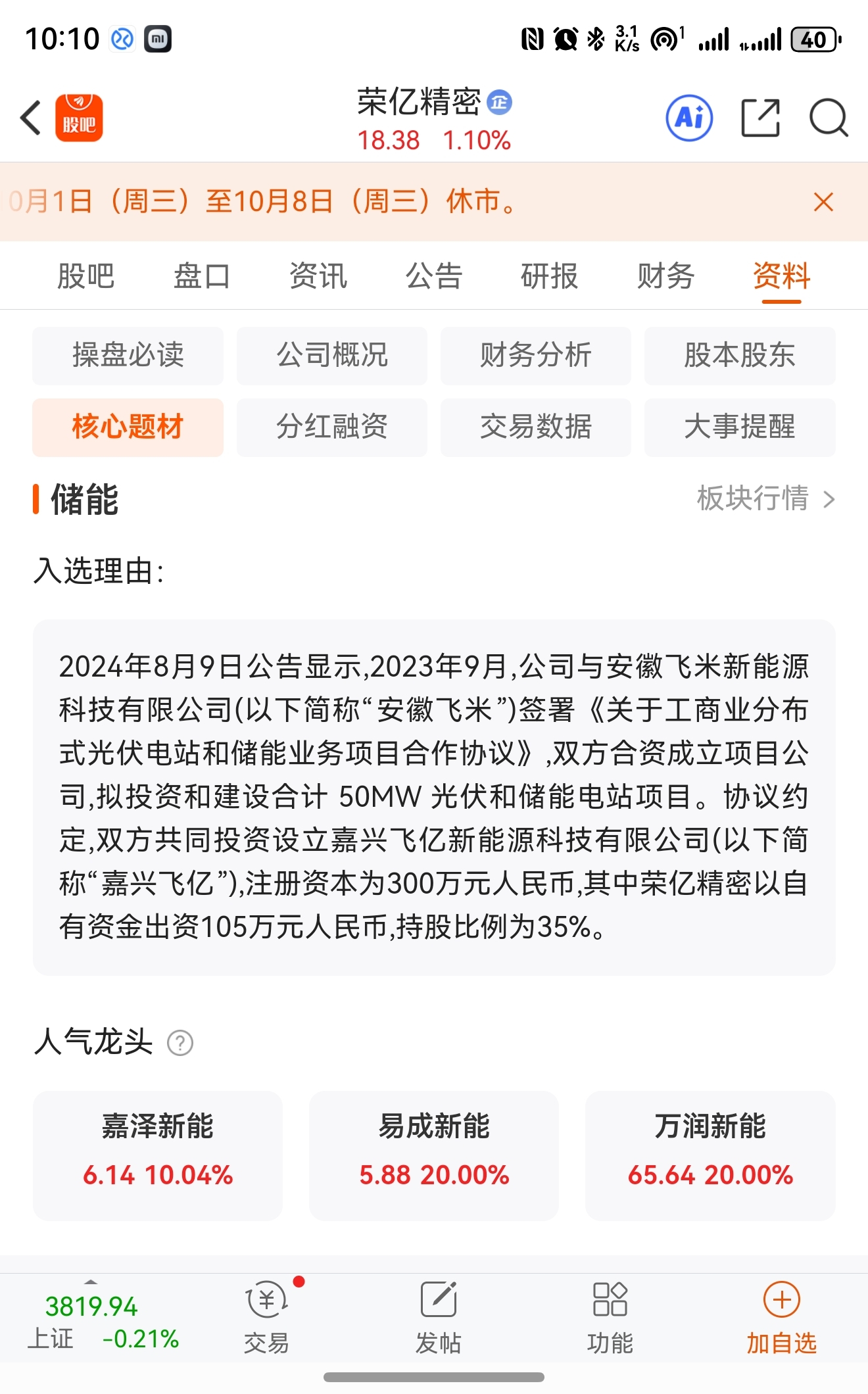 $荣亿精密(SZ873223)$ 储能概念涨停潮,北交所储能概念,荣亿精密。Ai液冷英伟达供应商+储能,最早带领北交所走出低谷的一只龙头股。$嘉泽新能(SH601619)$ $易成新能(SZ300080)$