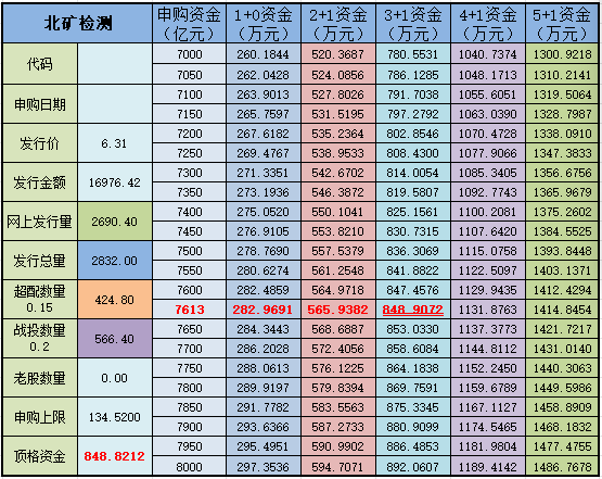 北矿各整手对应资金表~
