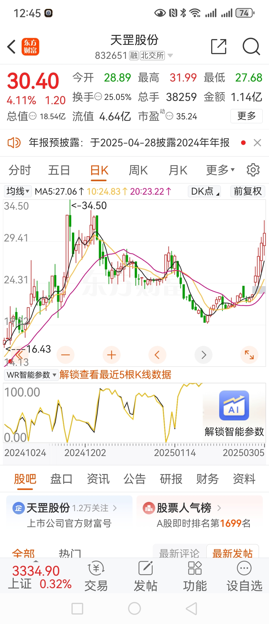 $铁拓机械(SZ873706)$ 卖了你你居然来个27厘米,可以。买的天罡股份涨的不如你,服了!!!不过天罡股份业绩年报预告已经1.2元多了,当新股上市也得六七十。