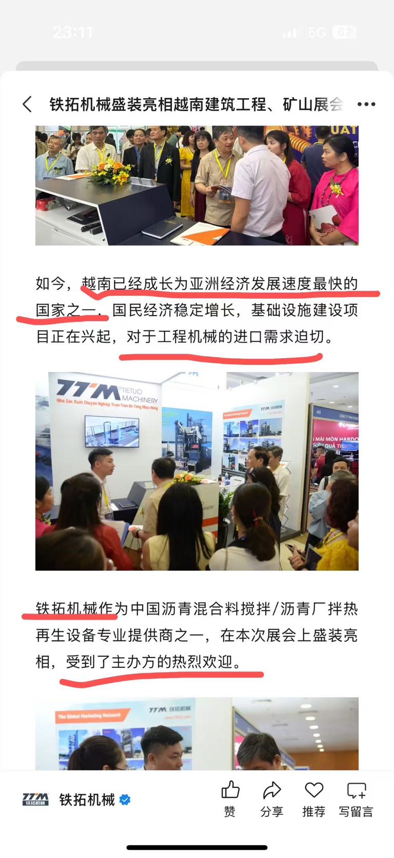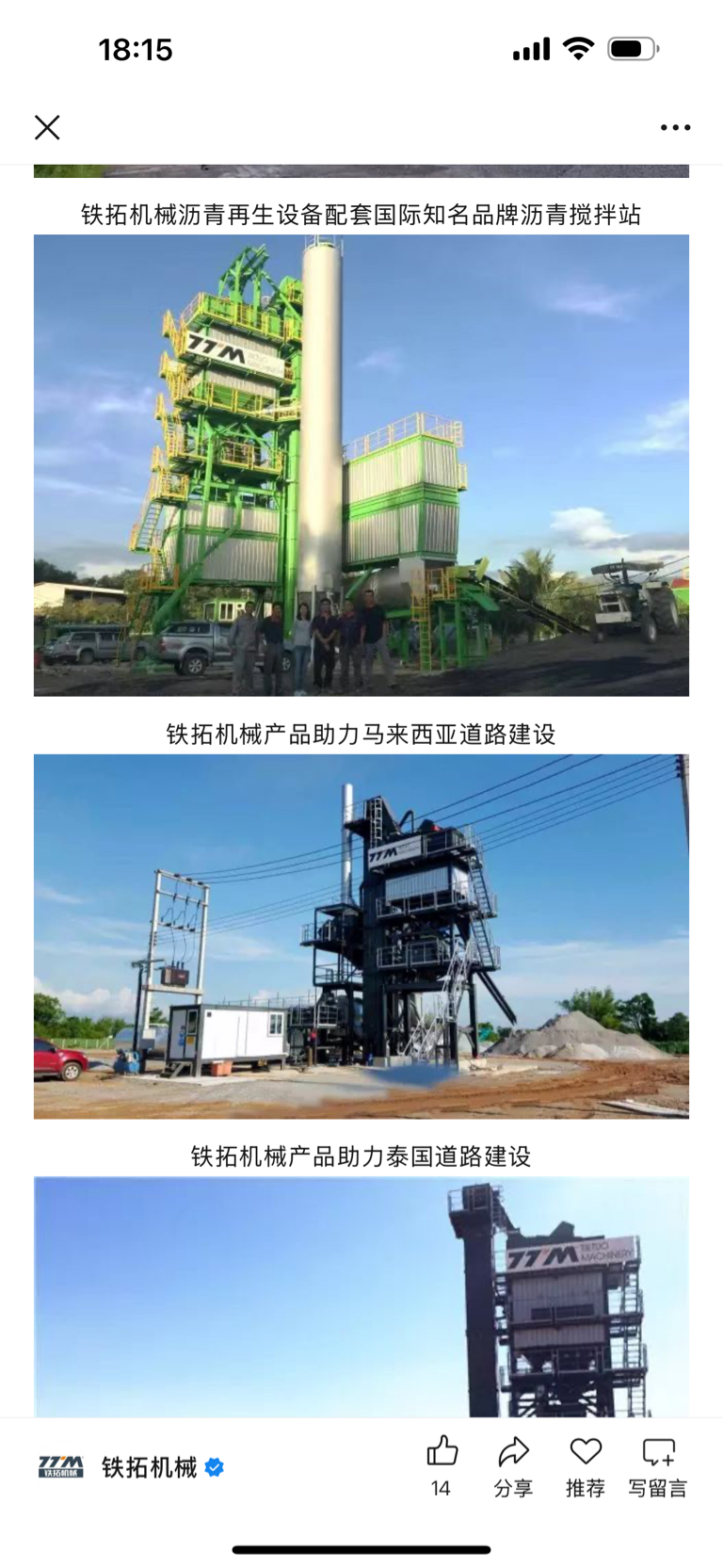 继续看好一带一路!首选马来西亚有业务有合作的。铁拓机械(BJ87370