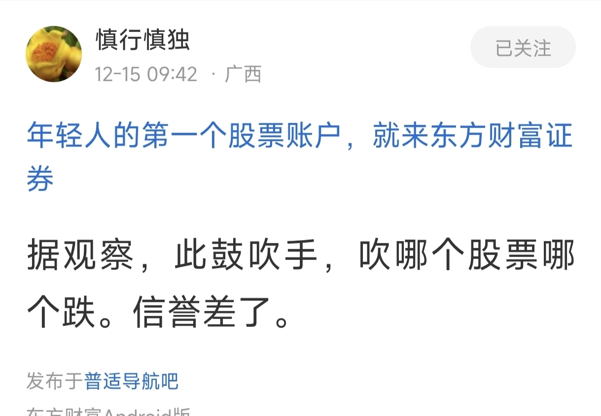 温馨提示: 1.根据《证券法》规定,禁止编造、传播虚假信息或者误导性信息,扰乱证券市场;2.用户在本社区发表的所有资料、言论等仅代表个人观点,与本网站立场无关,不对您构成任何投资建议。用户应基于自己的独立判断,自行决定证券投资并承担相应风险。《东方财富社区管理规定》