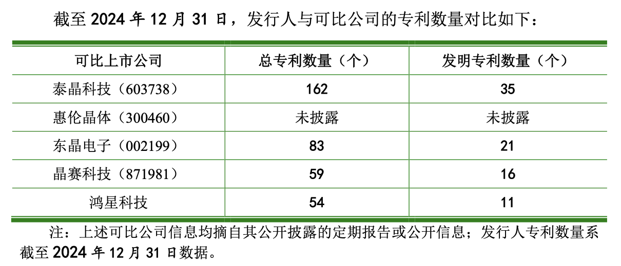 此外,鸿星科技解释称,凭借技术优势维持高毛利率。可是招股书显示,截至2024年6月30日,公司总专利数量为58个,在同行业可比公司中处于末尾。其中发明专利仅12个,同样排名倒数。这与公司声称的“技术水平的先进性”形成鲜明对比。在产品尺寸方面,鸿星科技主要产品SMD晶体谐振器的最小尺寸为1008(实现小批量量产),SPXO晶体振荡器的最小尺寸为2016。然而这一技术水平并不突出,泰晶科技(603738)和惠伦晶体(300460)的SMD晶体谐振器最小尺寸同样达到1008。