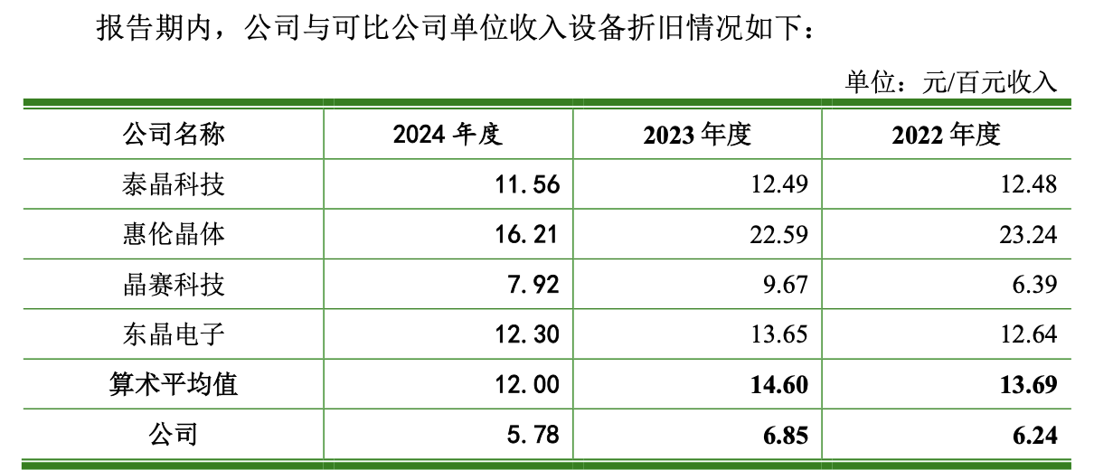 另外,在营收和净利下滑的情况下,鸿星科技的毛利率水平却远超同行,2022年至2024年间,公司主营业务毛利率分别为50.27%、45.06%和42.01%,而同行可比公司毛利率均值仅分别为17.67%、11.26%和12.34%,差距达数倍之巨。经过量化分析,鸿星科技将其原因归结为“技术水平具有先进性、客户结构优质、销售规模较大、产品销售均价较高、外销收入占比较高、直销收入占比较高、产能利用率较高、单位收入设备折旧较低、自主品牌销售占比较高”等多种因素。其中,公司2024年单位收入设备折旧费为5.78元/百元收入,远低于同行均值12元,根本原因在于公司设备老化严重。截至2024年12月31日,公司机器设备成新率仅16.63%,这一数字已经逼近15%的红线,意味着设备可能已接近甚至可能超过使用年限。