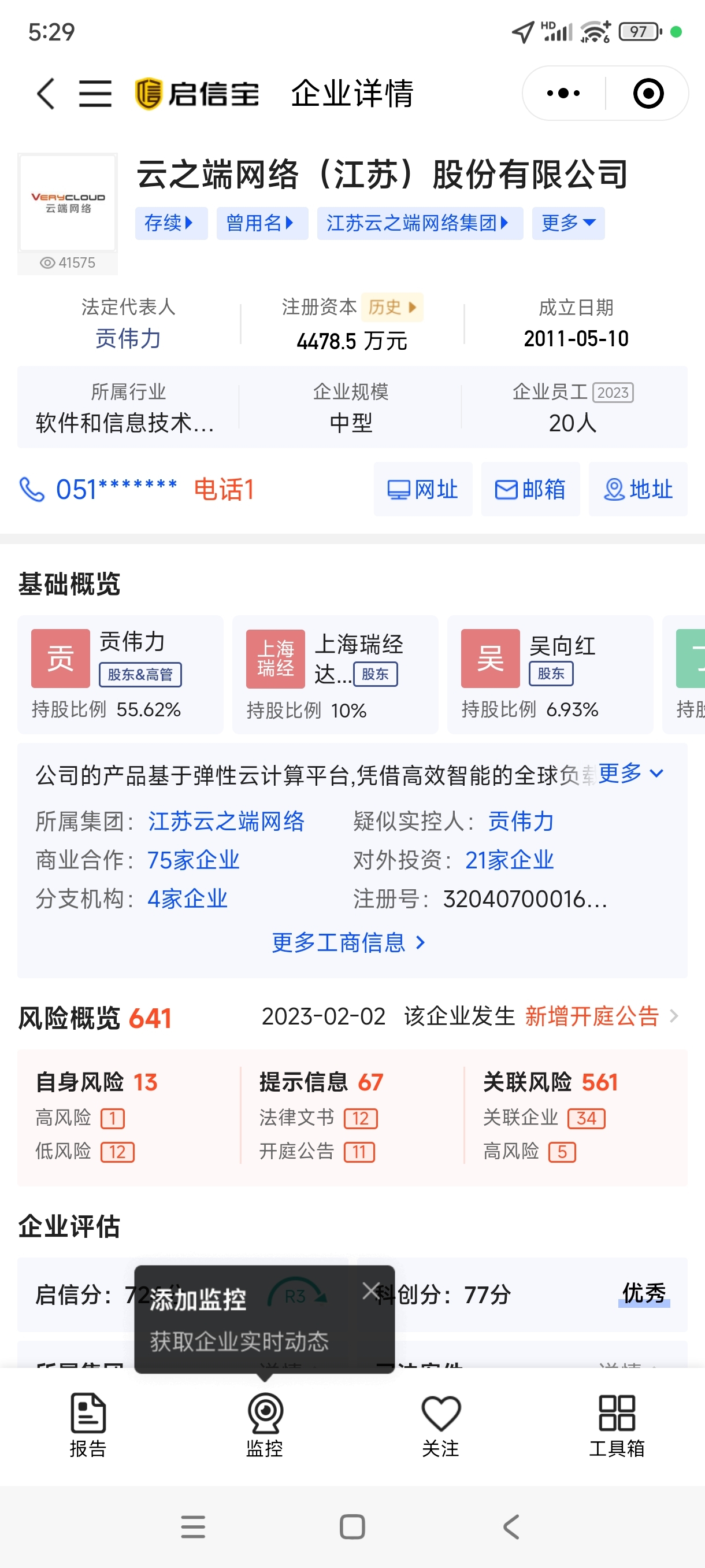 贡为力既是睿鸿股份董事长也是云之端网络(江苏)股份有限公司董事长和总经理!!