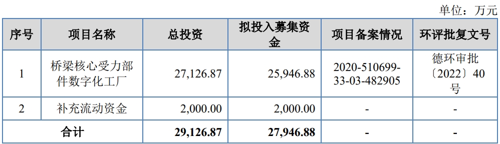 此次IPO,公司拟向不特定合格投资者公开发行规模不超过5710万股人民币普通股(含本数,不含超额配售选择权)。募集资金2.79亿元,将主要投向“桥梁核心受力部件数字化工厂”项目,旨在巩固并拓展公司的主营业务,有利于进一步提升公司盈利水平和技术创新能力,增强公司抗风险能力和核心竞争力。