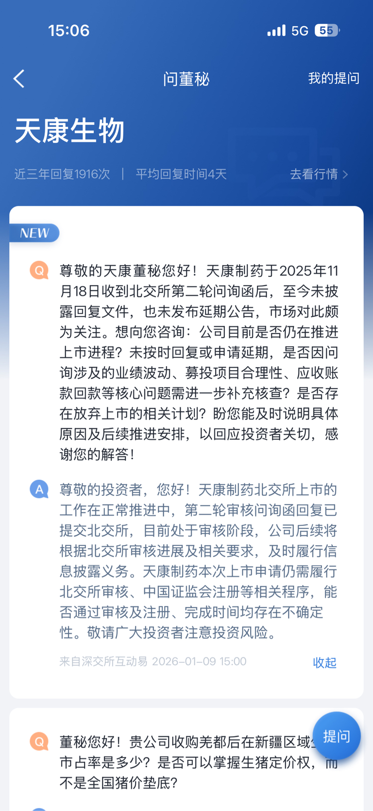 $天康制药(SZ874339)$ 看来早已回复!这么多天北交所没给回复!看来稳了