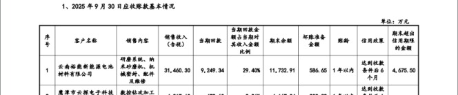 其中,客户江苏高达智能装备有限公司截至2025年9月30日逾期金额达883.01万元,虽然相比2024年末的1183.01万元有所缩减,但该公司账龄周期已然达1-2年,且回款比例极低。不仅如此,该公司截至2025年9月末的超出信用期限金额(9529.9万元)较2024年末(4156.58万元)的金额又翻了一倍;较2023年末(1864.39万元)增长5倍有余,这样的超出信用期限金额变化速度,进一步加剧了市场对公司应收账款回收风险的担忧。