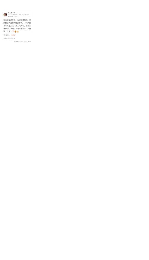 股市的最高景界。长线短线统吃。另外再加上打野的外加麻油。上月大鹏上市开盘买入。第二天卖出。赚了五十多个。出来后立马抢进常茅。又获赚十个点。