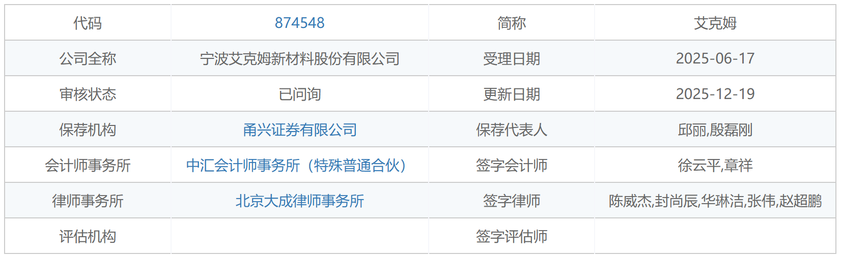 12月19日,据北交所官网,宁波艾克姆新材料股份有限公司(下称“艾克姆”)收到第二轮问询,公司业绩增速大幅放缓、与实控人亲属控制企业之间的业务往来和纠纷等情况受到监管层的进一步关切。