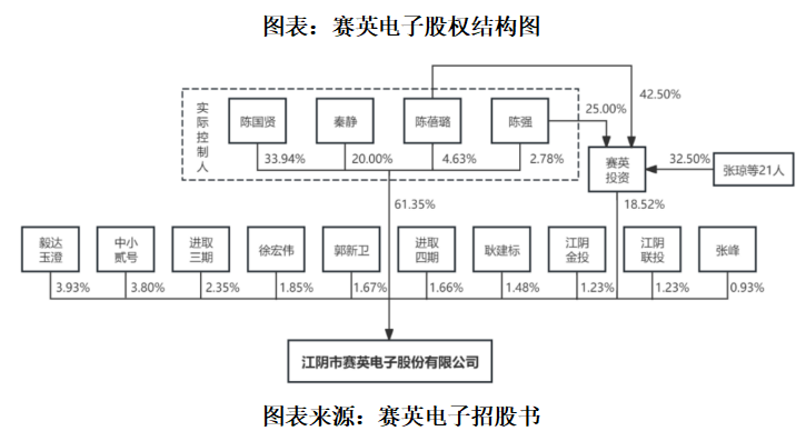 经历一系列增资和股权转让后,截至招股书签署日(2025年12月1日),陈国贤、秦静夫妇及其女儿陈蓓璐、女婿陈强合计控制赛英电子79.87%的表决权。其中,陈国贤担任公司董事长,秦静、陈蓓璐担任公司董事,陈强担任公司董事、总经理。