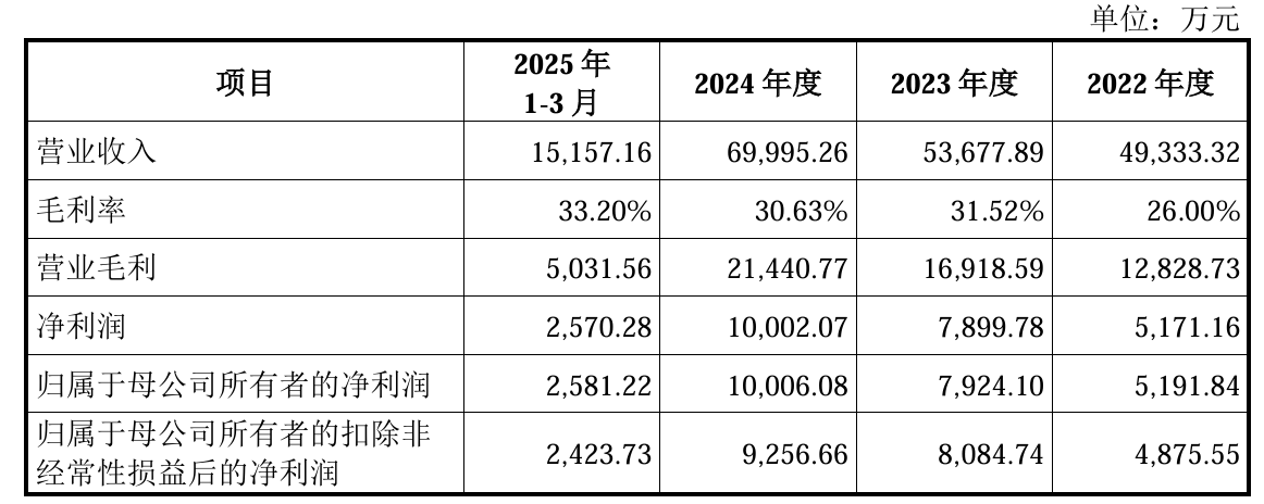 2022年至2024年及2025年一季度(下称“报告期”),中塑股份营业收入分别约为4.93亿元、5.37亿元、7亿元和1.52亿元,归母净利润分别为5191.84万元、7924.1万元、1亿元、2581.22万元。