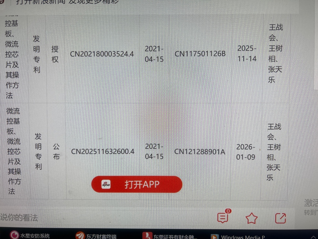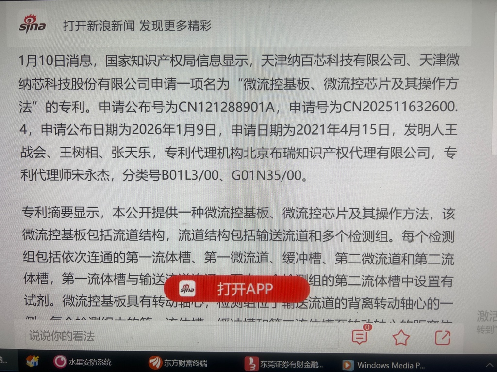 芯片专利1月10日最新消息、微流控芯片+微流控基板、这个公司名称、有芯片的、肯定