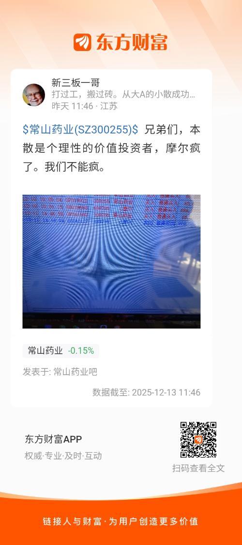 $常山药业(SZ300255)$  兄弟们,本散是个理性的价值投资者,摩尔疯了。我们不能疯。