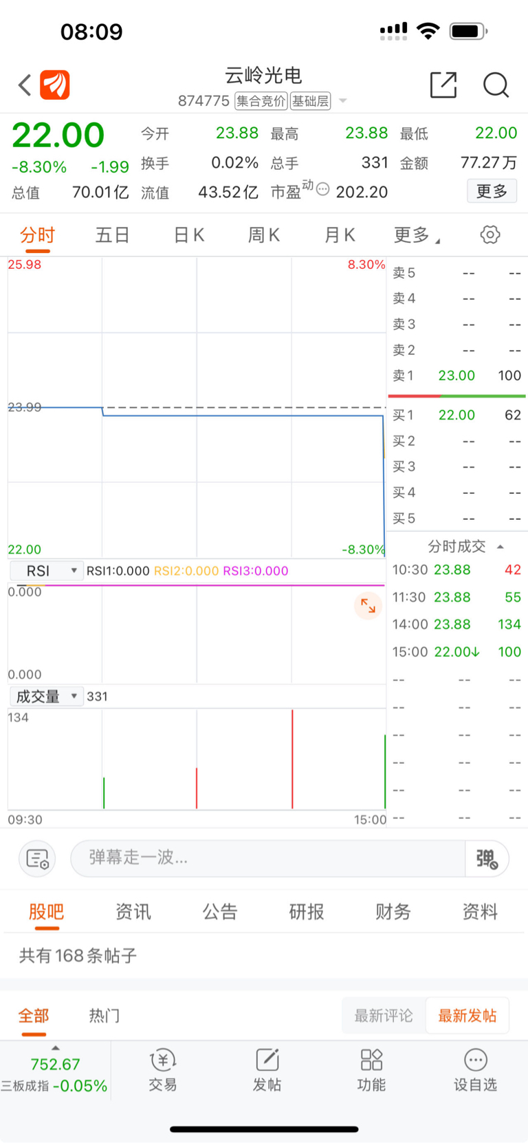 $云岭光电(SZ874775)$ 2026的2月10号,下午3:00,卖盘汹涌,当天23.88买入的人,当天被埋,真惨,下次小心点