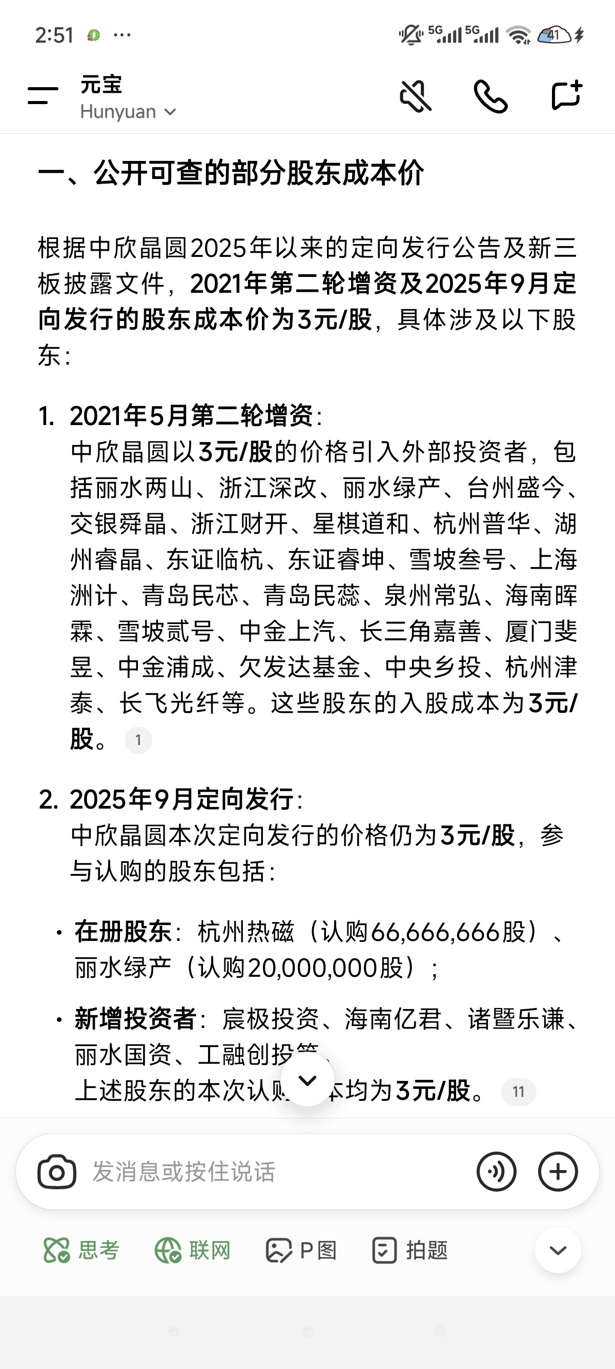 $中欣晶圆(SZ874810)$ 有非常了解这个股的朋友没,请问这个元宝查到的信息准确吗?如果21年这些股东都是3元入股,那现在这个价肯定可以买。就看这个消息准不准确了。刚刚315买了20000股做底仓。