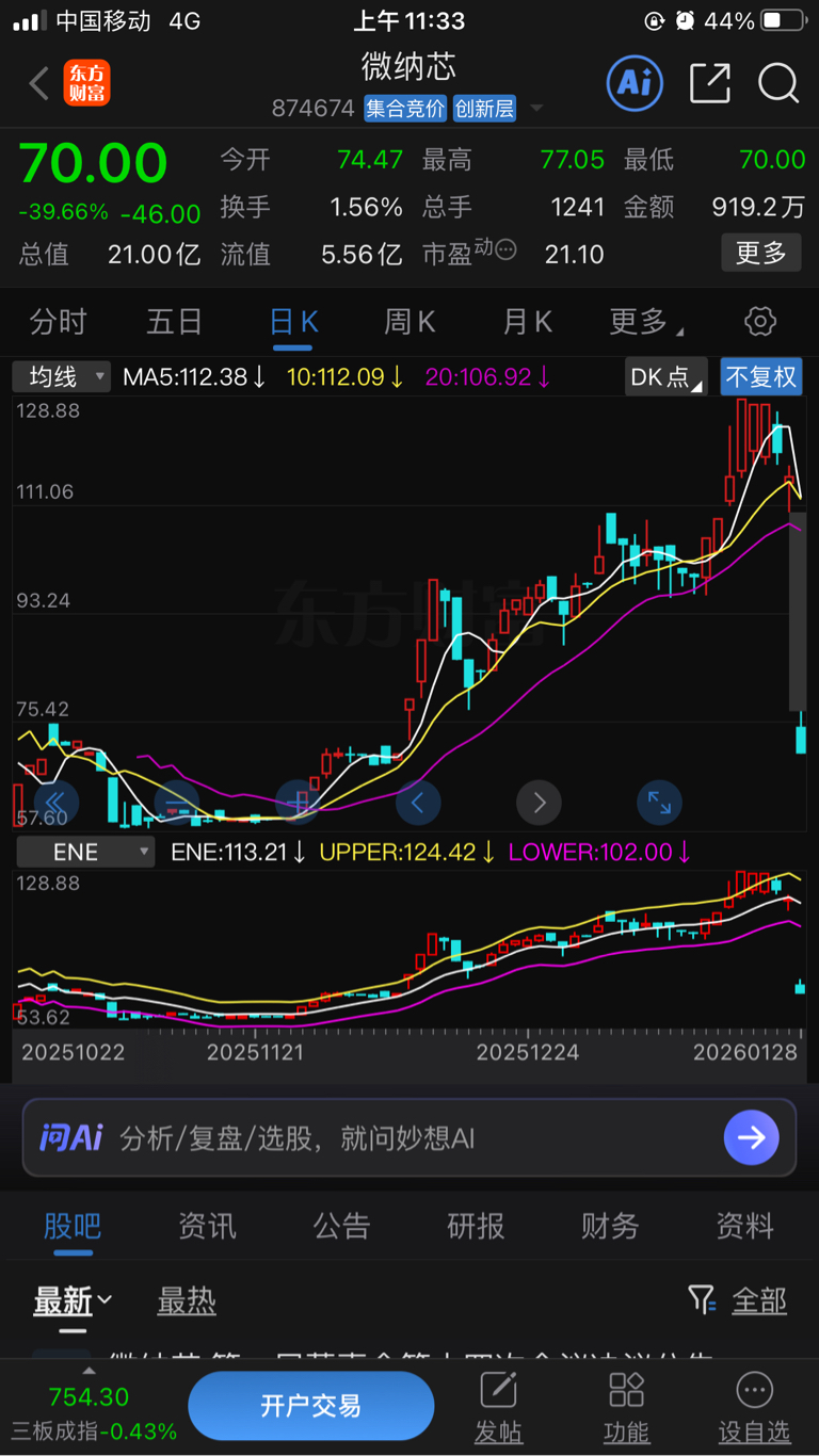 微纳芯大跌