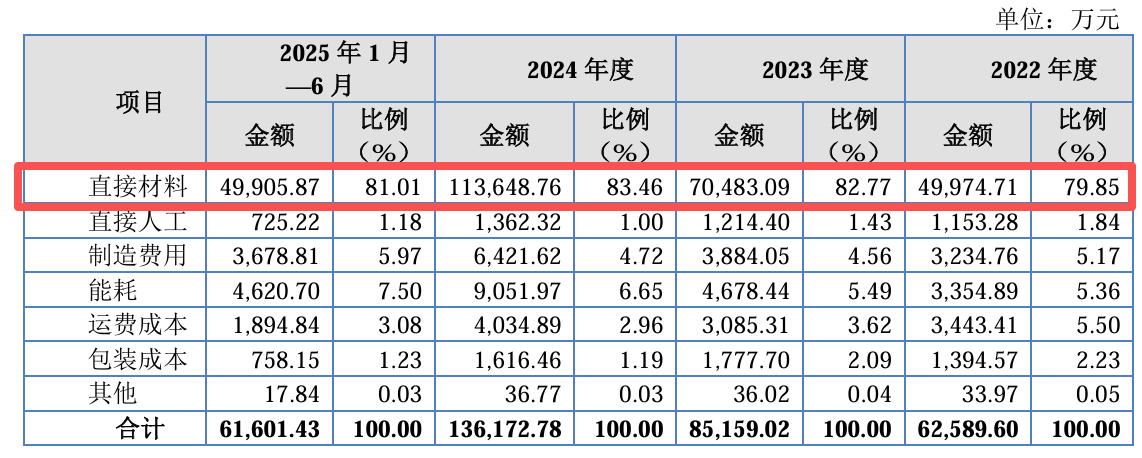 原材料成本占比超八成