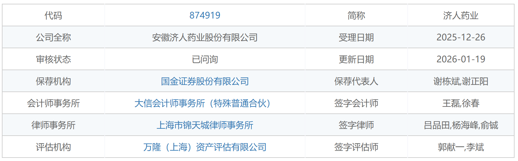 1月19日,据北交所官网,安徽济人药业股份有限公司(下称“济人药业”)收到第一轮审核问询函,公司核心产品销量和单价双双下滑、推广活动合法合规性等情况受到监管层的关切。